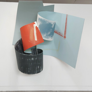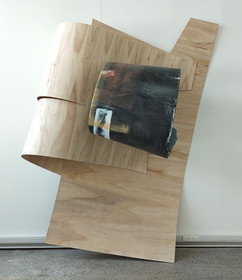 That little kick in the bottom right corner is working well. I wanted the pink to feel a bit off and make this one different from the other two. I think it's a bit dark though, so will re-paint before seminar. That pink piece also cracked when I was taking it down. It's heavy and awkward to deal with, so I'm going to have to cut the crack out so it doesn't keep splitting down the grain of the wood and snapping completely off.