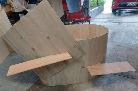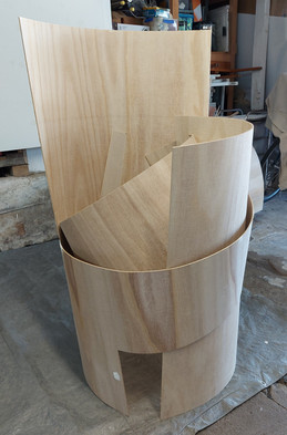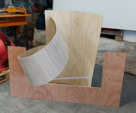 Then to painting. People often comment that they think my work should be made out of metal. Two reasons why I don't do that at this point in my Masters. I can't afford it - it would require a whole new set of tools and materials I don't have. And it would require a few years of learning and experimenting to get me to a level of knowledge equal to the level I have with working with wood. Three reasons - weight. Metal is much heavier than ply. To work at a large scale I'd need another pair of hands and a forklift.
